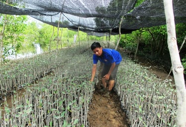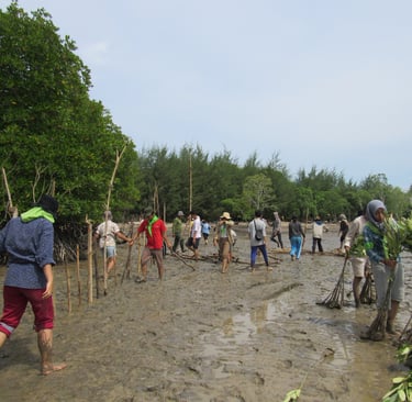 "Ekosistem pesisir seperti mangrove, terumbu karang, padang lamun dan estuari dapat berperan sebagai zona penyangga alami, mengurangi risiko bencana bagi masyarakat pesisir yang rentan dan memitigasi perubahan iklim. Mengacu pada pemanfaatan strategis keanekaragaman hayati dan konservasi habitat dalam strategi adaptasi perubahan iklim yang menyeluruh, yang bertujuan untuk memberdayakan masyarakat lokal dengan tujuan mencapai pembangunan berkelanjutan dan berketahanan iklim"
